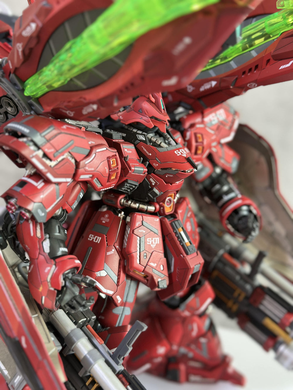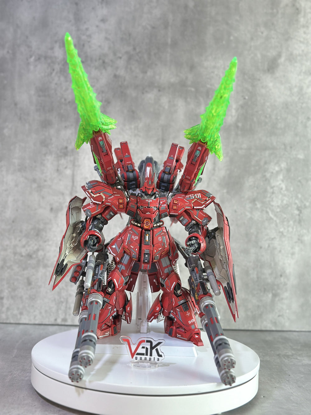 Custom made painted MG Ver. Ka Sazabi with MG size Double Horn Funnel and Vulcan Cannon. Metal stand
